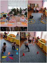 На «Спортивной» станции ребята играли в подвижные игры «Попади в обруч», «Собери цветок», «Кто первый». Вместе с воспитателями ребята сделали «Светофор здоровья», вспомнили, как важно соблюдать режим питания, узнали много интересного о полезных и вредных продуктах и наличии в них витаминов.