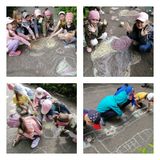 В конкурсе приняли участие дети старшей группы. Дети с энтузиазмом взялись за разноцветные мелкими ещё недавно скучный темно-серый асфальт заиграл всеми цветами радуги. На дорожках появились: смешные человечки, дома, сердечки, бабочки, порхающие возле чудесных цветов и даже дорога, по которой едут легковые и грузовые автомобили.