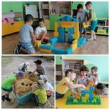 Ну и какое же строительство без самих строителей? С энтузиазмом юные строители принялись за дело. Какие удивительные постройки получились у ребят: они охотно пользовались различными строительными материалами- конструктором «Лего», мягкими модулями, деревянными кубиками, а детали «подвозились» на различных машинах: самосвалах, грузовиках.