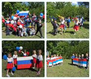 Вниманию детей был предложен рассказ об истории и традициях празднования этой даты. Дети активно включались в беседу, показывая свои знания о родной стране, о символике, читали стихотворения патриотического содержания, слушали гимн РФ. С флажками, воздушными шарами, султанчиками цветов Российского флага дошкольники вышли на спортивную площадку и приняли участие в ярком флешмобе «России реют флаги».