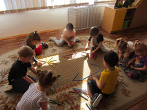 В этот день к ребятам группы №4 МБДОУ ДС №38 г. Кузнецка в гости пришёл Карандаш с весёлыми играми и затеями. Он пригласил малышей в свою мастерскую, но попасть туда можно было, если правильно найти дорожку по цвету. Хорошо, что малыши знают цвета и не заблудились по дороге. Но оказалось, что в мастерской Карандаша пропал зелёный цвет! Ребята очень удивились, узнав, что если смешать синий и желтый цвет, можно получить зелёный. Много интересного увидели дети в мастерской Карандаша: помогли карандашам «оживить» картинки и даже устроили необыкновенную карандашную «рыбалку».