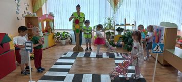 Ребята из группы №9 МБДОУ №38 г. Кузнецка поучаствовали в познавательно- развлекательном мероприятии «Путешествие со Светофорчиком». Дети разыграли ситуации перехода дороги через пешеходный переход как на нерегулируемом перекрестке, так и по сигналу светофора. Играли в подвижные игры: «Автобус», « Пешеход и светофор», угадывали мелодии из мультфильмов и называли персонажей, которые передвигались на транспорте: «Бременские музыканты», «Ну, погоди», «Маша и медведь», «Приключения кота Леопольда».